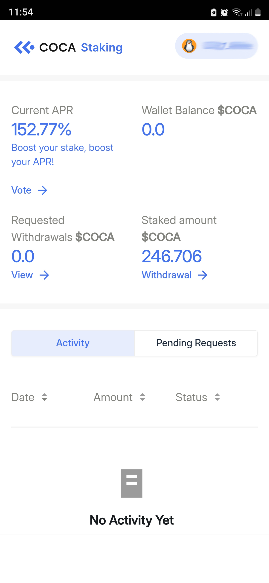 Je kan ten allen tijde je Tier-Staking opzeggen en je COCA tokens terugvorderen. Hier zie je hoe je dat moet doen.